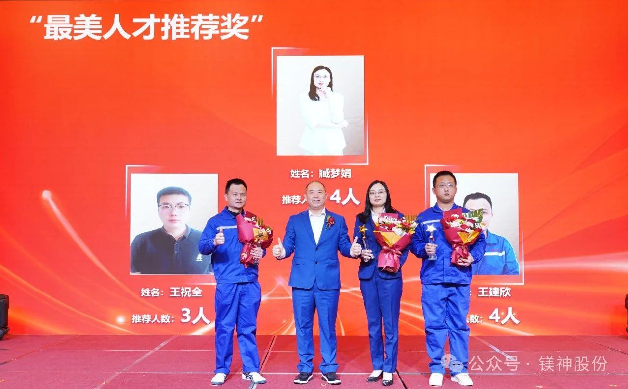 公司為5年以上108名老員工發(fā)放了忠誠(chéng)貢獻(xiàn)獎(jiǎng)牌和鮮花,他們與鎂神風(fēng)雨同舟,用青春見(jiàn)證企業(yè)從初創(chuàng)到行業(yè)龍頭的發(fā)展歷程!