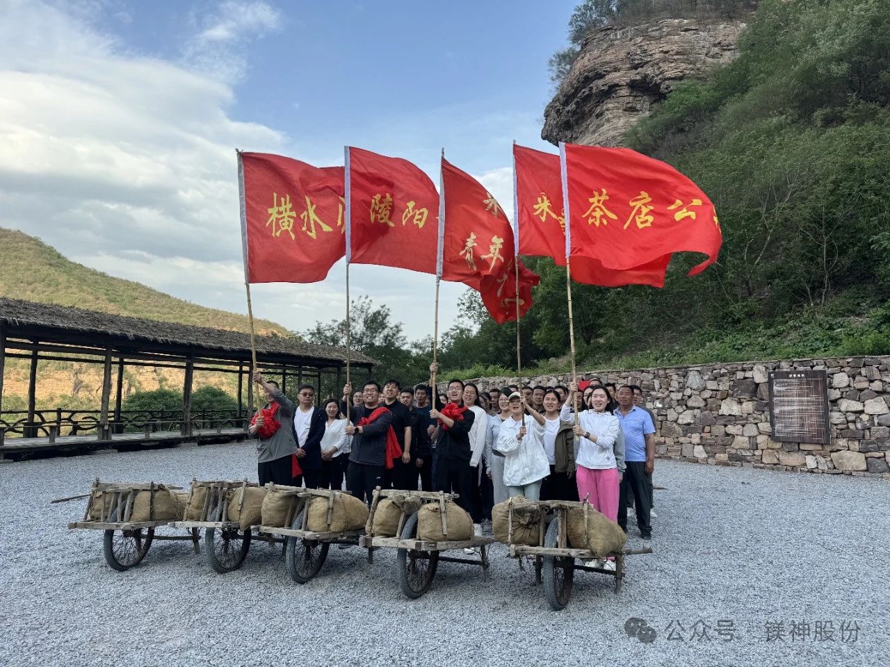 走出紅旗渠紀(jì)念館,大家開啟了徒步7.8公里前往紅旗渠青年洞的征程,沿著蜿蜒的渠道前行,腳下是堅(jiān)實(shí)的石板路,身旁是潺潺的渠水,頭頂是湛藍(lán)的天空,遠(yuǎn)處是巍峨的山巒。在徒步過程中,大家相互鼓勵(lì)、相互扶持,共同克服疲憊與困難。抵達(dá)青年洞時(shí),全體人員在黨旗下莊嚴(yán)宣誓,鏗鏘有力的誓言回蕩在山谷間,彰顯著鎂神人對黨的忠誠與為事業(yè)奮斗的決心。隨后,大家還親身體驗(yàn)了鑿山石、推獨(dú)輪車、打夯等當(dāng)年修渠時(shí)的勞動(dòng)項(xiàng)目。每一次揮錘、每一次推車、每一次夯打,都讓大家深刻感受到先輩們的艱辛與不易,也讓紅旗渠精神更加鮮活地銘刻在大家的心中。