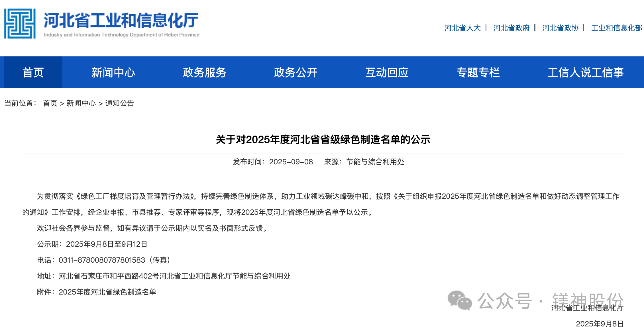 2025年9月8日,河北省工業(yè)和信息化廳正式公布了2025年河北省綠色制造名單。河北鎂神科技股份有限公司(以下簡稱“鎂神科技”)憑借在綠色制造、節(jié)能降耗、清潔生產(chǎn)等方面的突出表現(xiàn),成功入選“2025年度河北省綠色制造名單”!這是公司積極踐行綠色發(fā)展理念、扎實推進綠色體系建設(shè)取得的重大成果,也是對鎂神科技綠色制造水平和可持續(xù)發(fā)展能力的認可!