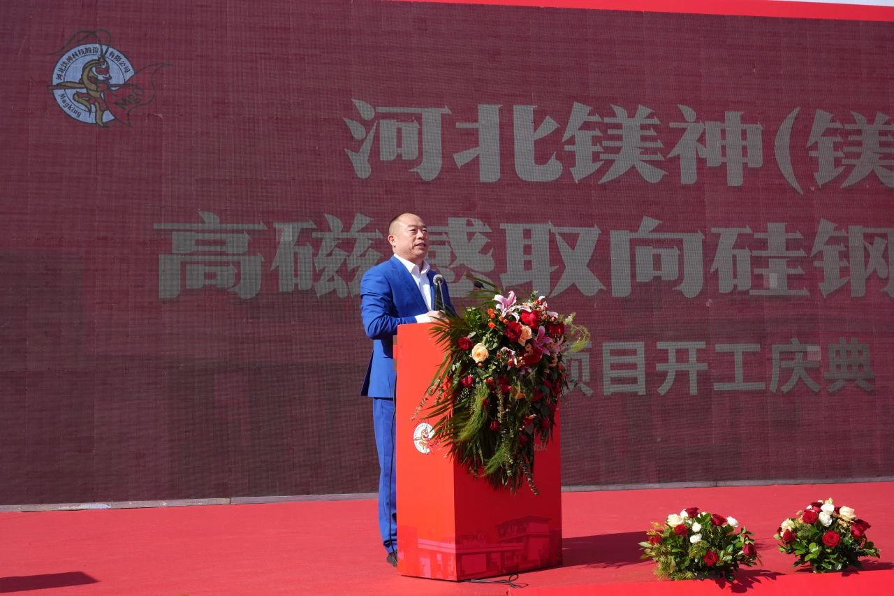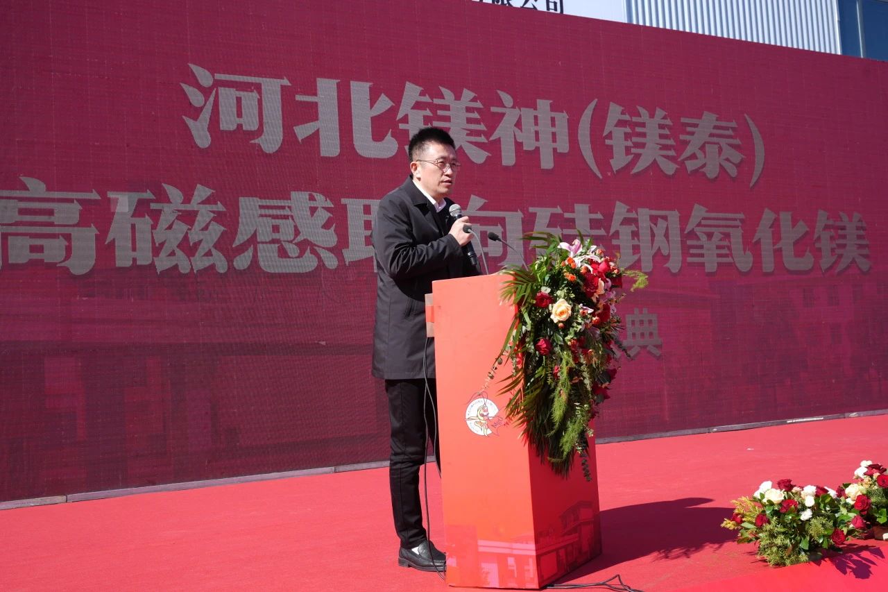 孫文董事長(zhǎng)首先對(duì)遠(yuǎn)道而來(lái)的各位領(lǐng)導(dǎo)、專家、合作伙伴和朋友們表示由衷的感謝。他提到,這一項(xiàng)目的順利啟動(dòng),離不開社會(huì)各界長(zhǎng)期以來(lái)對(duì)鎂神科技的支持與厚愛(ài)。在致辭中,他回顧了公司21年來(lái)通過(guò)專注于氧化鎂行業(yè)的深耕與應(yīng)用研發(fā),從傳統(tǒng)氧化鎂產(chǎn)品逐步向高端化、精細(xì)化轉(zhuǎn)型升級(jí)的發(fā)展歷程。并分享了自己站在中國(guó)鎂鹽行業(yè)的前沿對(duì)硅鋼氧化鎂的見(jiàn)解。最后,孫文董事長(zhǎng)再次對(duì)與會(huì)嘉賓的支持表示感謝!并堅(jiān)信在鎂神的戰(zhàn)友們共同努力下,未來(lái)10年一定能實(shí)現(xiàn)世界級(jí)鎂質(zhì)新材料定制專家,世界級(jí)應(yīng)用研發(fā)領(lǐng)跑者,全球鎂資源整合者,世界級(jí)隱形冠軍締造者的戰(zhàn)略目標(biāo)。為中國(guó)一帶一路添彩,為中國(guó)制造爭(zhēng)光,為民族復(fù)興增磚添瓦,為中國(guó)鎂行業(yè)發(fā)展貢獻(xiàn)我們的一份力量。