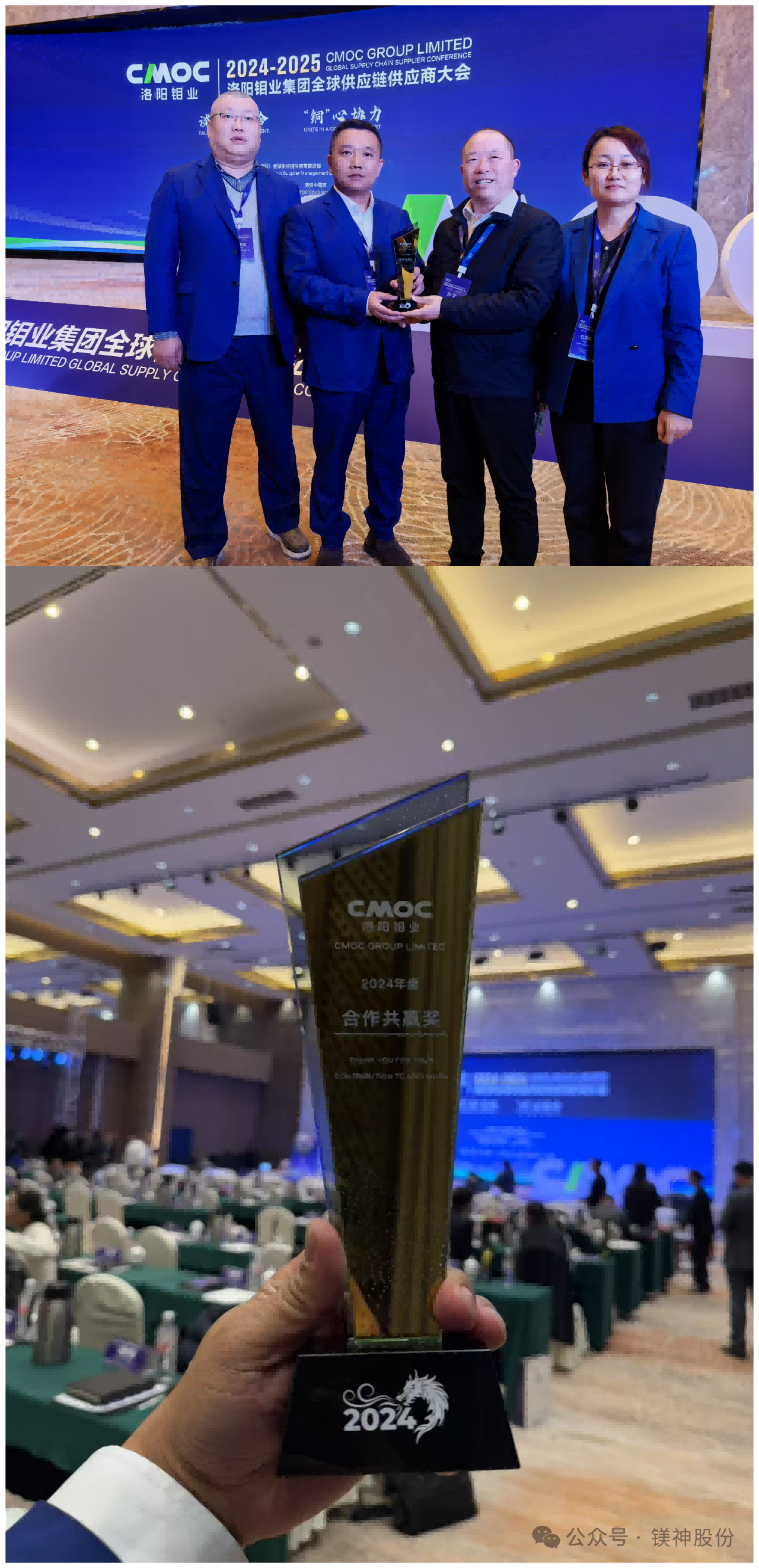昨日,河北鎂神科技股份有限公司(以下簡(jiǎn)稱“鎂神科技”)憑借其卓越的創(chuàng)新實(shí)力和深耕細(xì)作的態(tài)度,榮獲了洛鉬集團(tuán)頒發(fā)的“2024年度合作共贏獎(jiǎng)”。